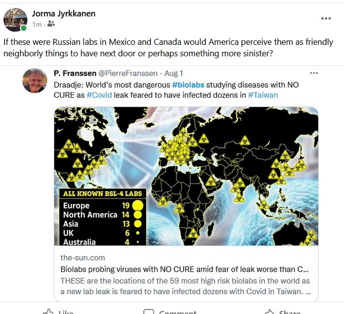 Pentagon Global Biowarfare Program. Liz Churchill. 2023-05-29. Analyst Jorma Jyrkkanen, BSc, PDPMay 29, 2023In “active program”