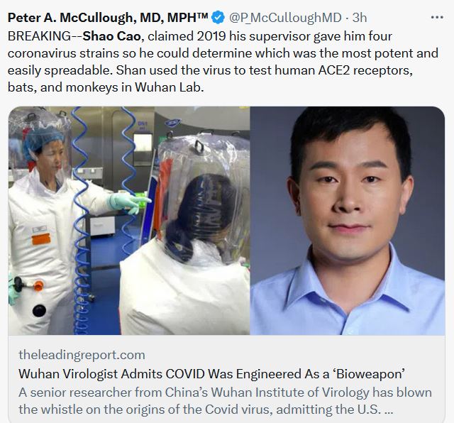Wuhan Institute of Virology Shao Cao Admission Wuhan Lab Participated in the Search for Best ACE2 Adherent Spike for Weaponization