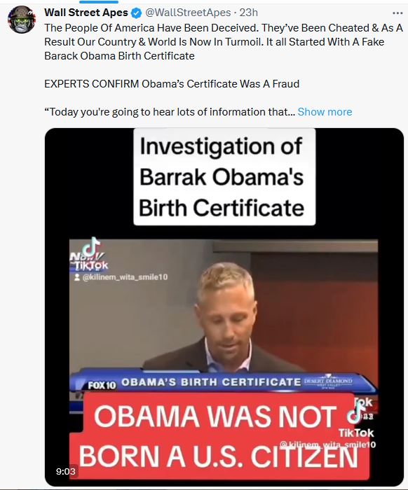 The People Of America Have Been Deceived. They’ve Been Cheated & As A Result Our Country & World Is Now In Turmoil. It all Started With A Fake Barack Obama Birth Certificate EXPERTS CONFIRM Obama’s Certificate Was A Fraud “Today you’re going to hear lots of information that some of you are going to understand and going to be able to tell the true story. In fact, please know that this is a very technical, but the evidence is clear if you’ll pay attention. Please note you’re going to hear about two separate experts. These experts are two separate continents with no knowledge of each other and they draw similar conclusions. Again, that said, I know some of you are going to get this story and are going to tell the story the way it was.” —- “We and anyone else who dared to question the document have been the line falsely labeled grossly criticized in the bulk of the media on certain internet sources for years. Today we’re going to set the record straight. I believe you will be shocked by what you hear and see today.” —- “Like the sheriff just told you, when you conduct criminal investigations, you have to let the evidence lead you. You never lead the evidence. And in doing this, my motive was to clear the document. Because to be quite honest with you, I didn’t believe it. I didn’t believe this was possible. I didn’t think this would ever happen in this nation. I didn’t believe it.” — “Back in 2012, I told you about Reed Hayes, a document examiner. Let me tell you about Reed Hayes, a man with 40 years, since 1974, 40 plus years of experience in examining forensic document, handwriting, a man who’s well respected in his expertise, a court recognized expert, a document examiner. He is the man you go to when somebody gives you a bad check with a bad signature. This is the guy you run to. Law firms use him all the time. He’s been maligned. And let me tell you something about Mr. Hayes. When I contacted Mr. Hayes, Mr. Hayes told me right off the bat, I’m an Obama supporter. I voted for him twice. He goes, and I will never do anything to hurt the President of the United States. What I had said to him was, Reed, I am not asking you to hurt the President of the United States. I’m asking you to take a look at this document and clear it and tell me there’s nothing wrong with it. Would you at least do that? And he took a look at it. And when he called me back, he told me, Mike.” “I can’t clear this, there’s something wrong with it.” And I asked him, I said, Reed, would you continue? I said, I know your position, but would you continue? And his answer to me was, this is what I do. I’ll look at it, I’ll do it. That’s a man of integrity, respecting what his ability is to get to the truth. Because for Sheriff Apoyo and myself, this was never about Barack Obama. This is about a document. You take that document and you remove the name, Barack Hussein Obama, and put your name on there. If it was your document and it was brought to us, we would do the same thing with this document.” They COULD NOT clear the document. Much more info in this video if you watch the whole thing